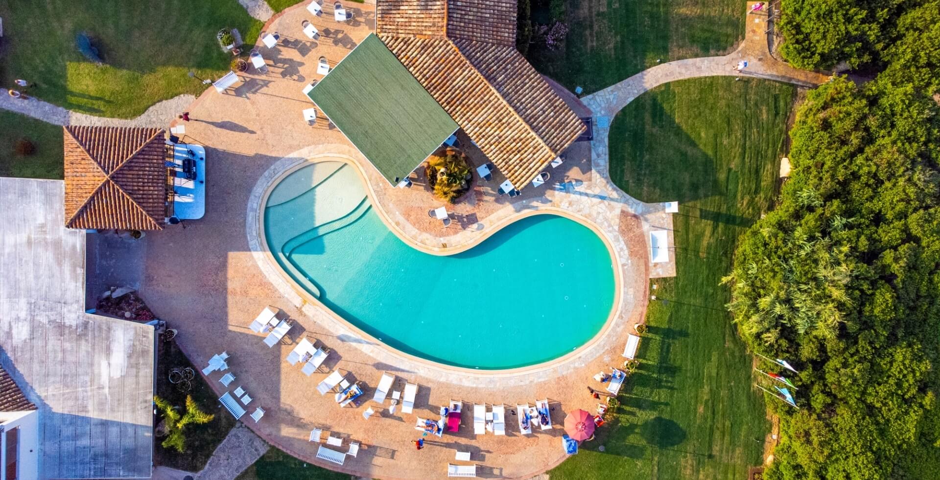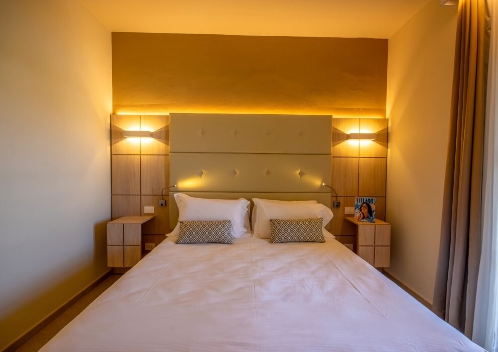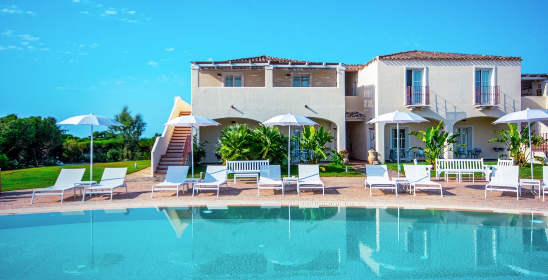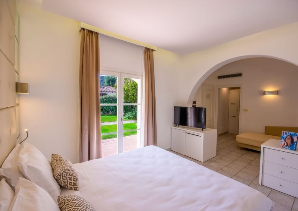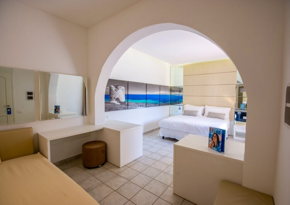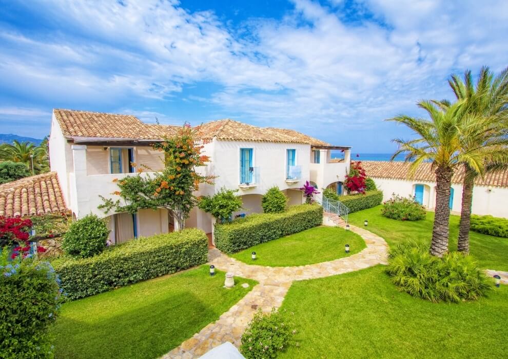 The elegant and welcoming exterior architecture is reminiscent of a small Sardinian village and blends with the modernity of the interiors, all very bright and furnished with great attention to detail.