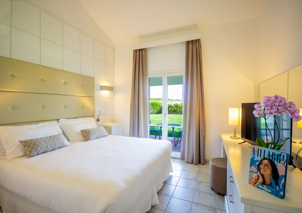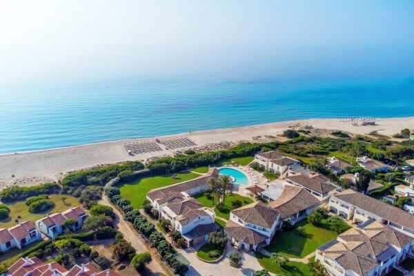 The vacation village is located directly on the beautiful beach, a very wide stretch of beach where there is a private area with umbrellas and sunbeds, behind which there are beach volleyball and beach tennis courts.