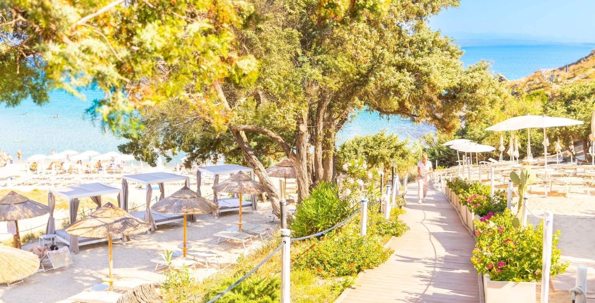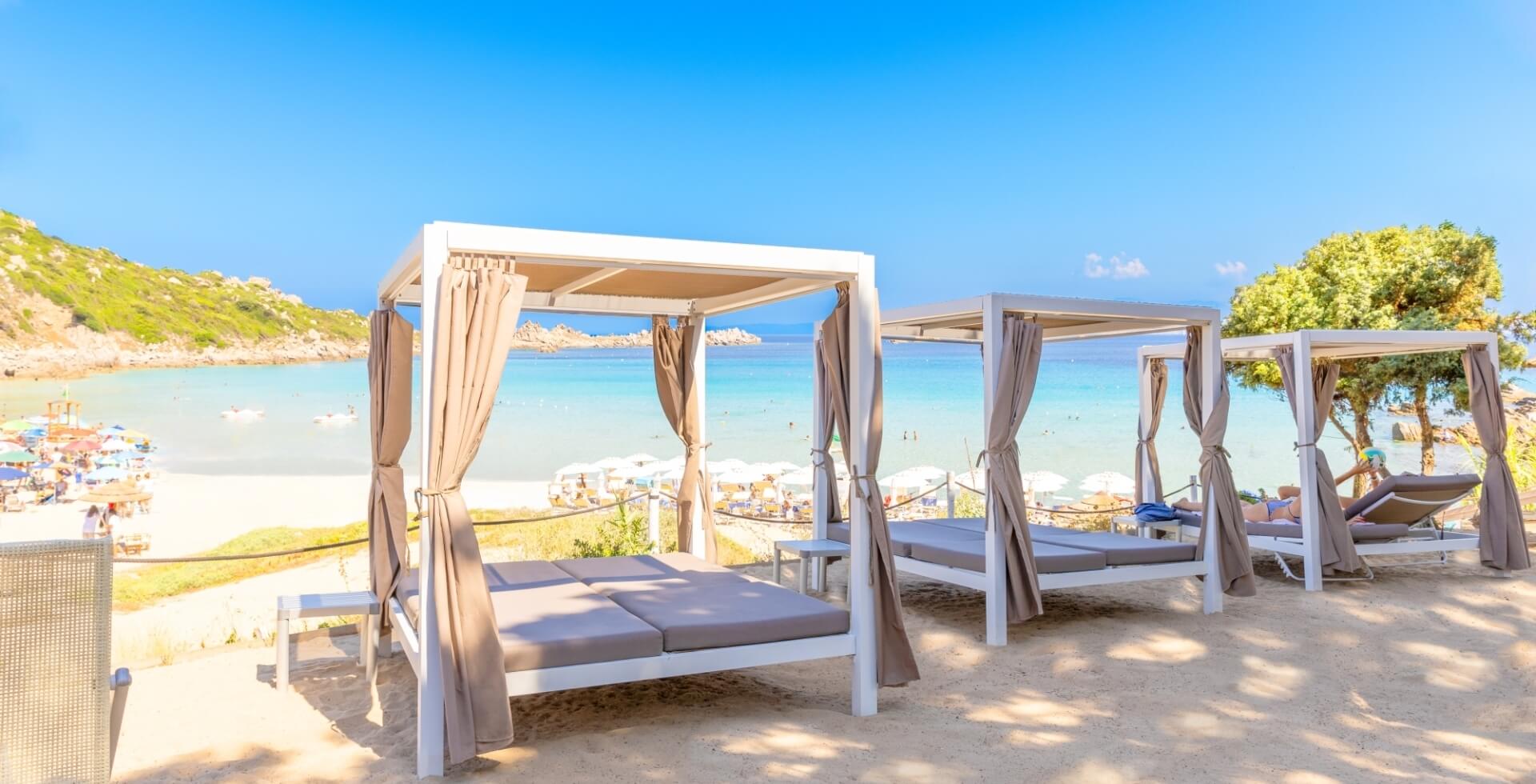 Directly on the public beach of Rena Bianca, sunbeds and umbrellas for a fee with reservation on site.
