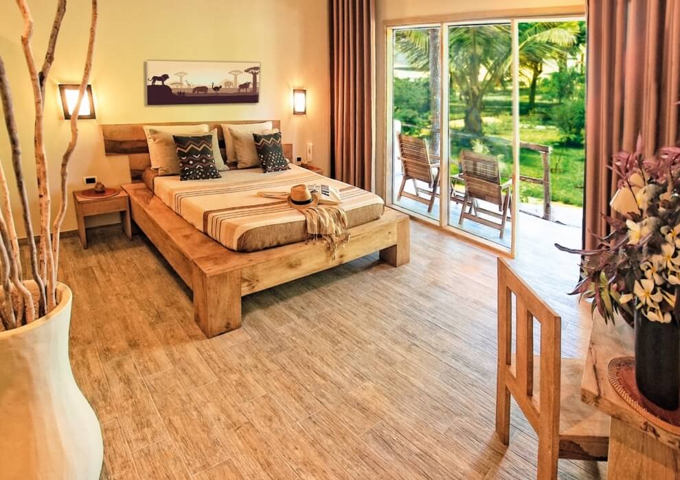 Le 63 camere del Zanzibar Village sono arredate in stile etnico moderno e sono state tutte completamente ristrutturate da poco.