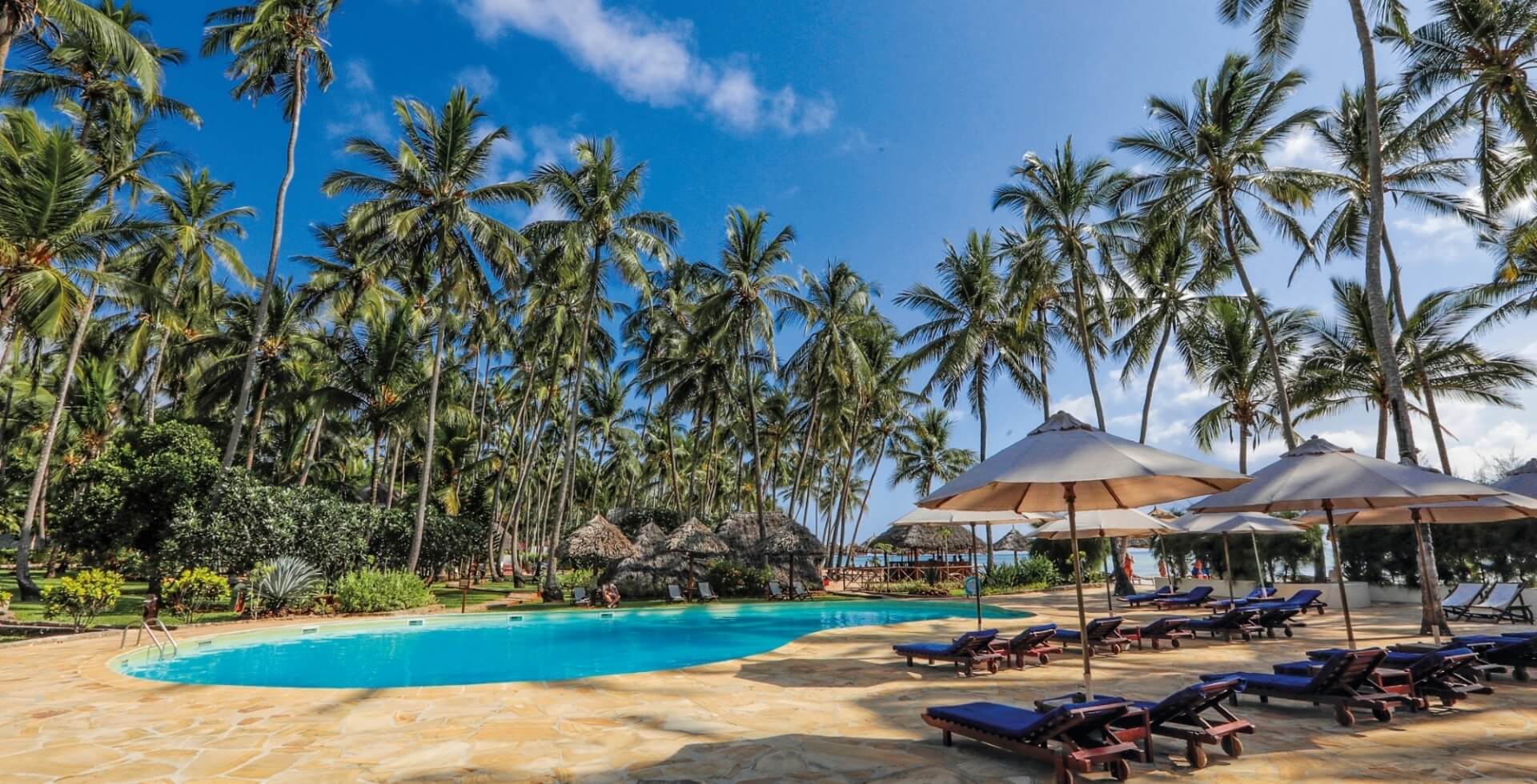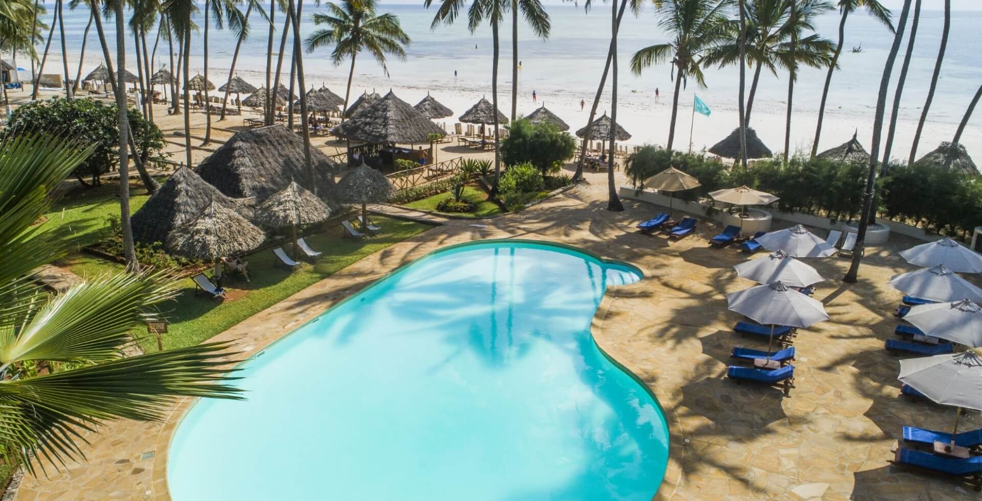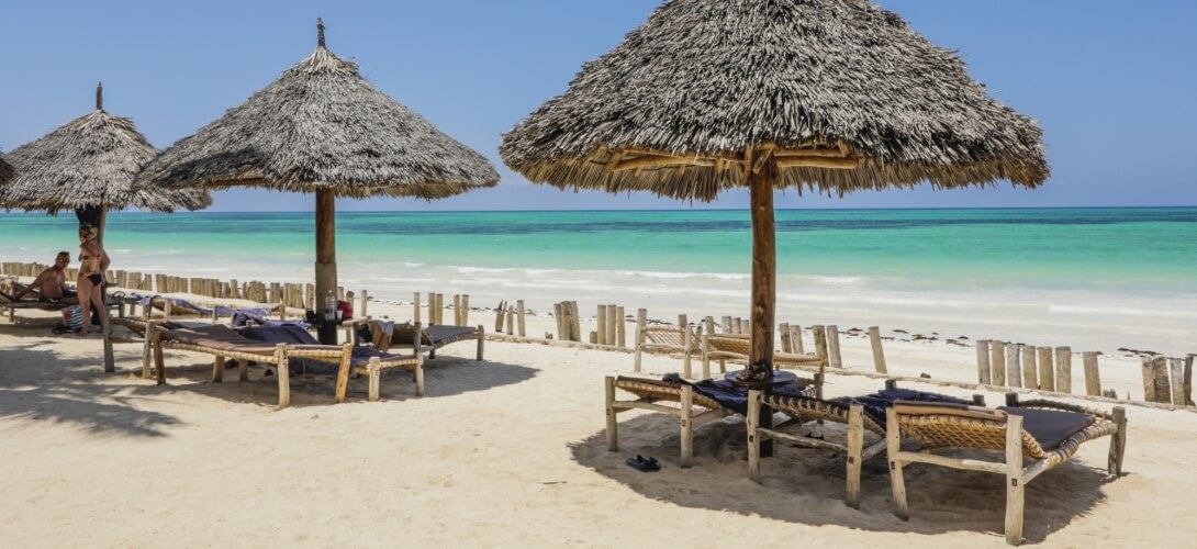 Il Zanzibar Village si affaccia sull'ampia spiaggia di Kiwengwa, sulla costa orientale dell'isola di Zanzibar, caratterizzata da sabbia candida e acque che variano dal verde smeraldo all'azzurro intenso.