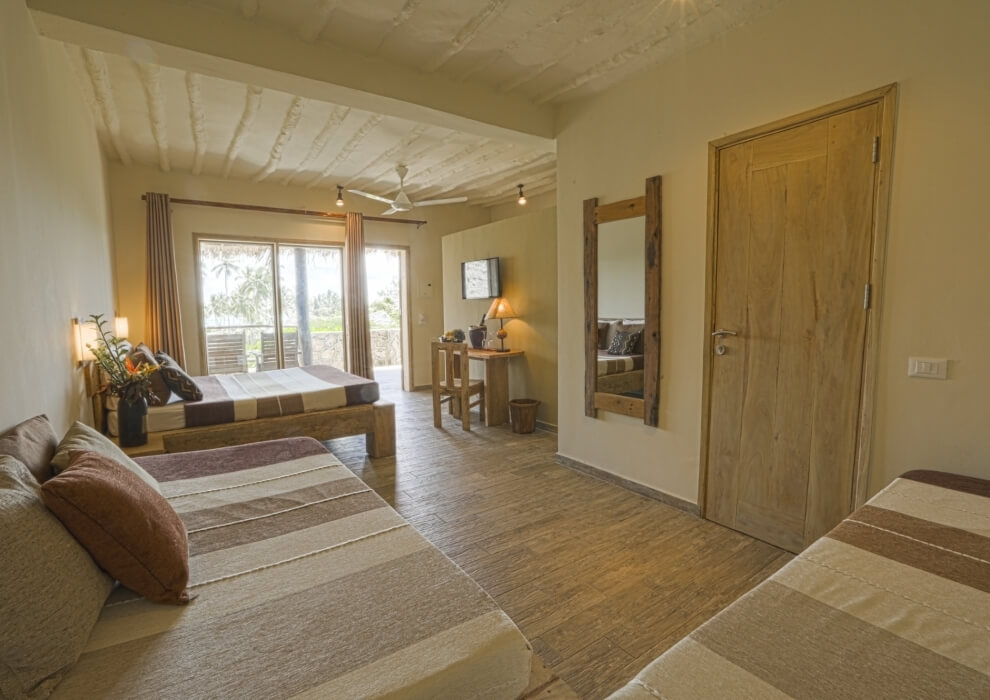 Sono distribuite in vari edifici a un unico piano, collegati tra loro da viottoli ombreggiati dalle palme. Il Villaggio non è molto grande, quindi da qualsiasi camera si può raggiungere con una piacevole passeggiata sia la spiaggia che il ristorante e la piscina.